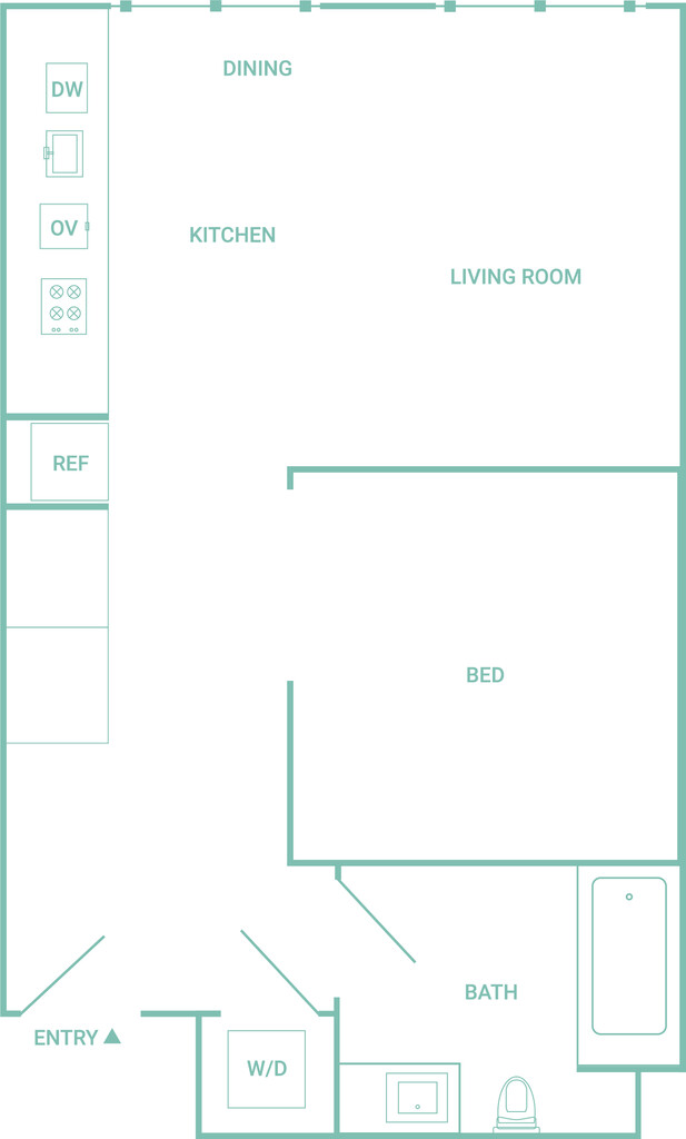 Apartment Model: S2Call For RatesStudio, 1 Bath, 591-595 sq ftUnavailableFloor plans are artist's rendering. All dimensions are approximate. Actual product and specifications may vary in dimension or detail. Not all features are available in every rental home. Prices and availability are subject to change. Base rent is based on monthly frequency. Additional fees may apply, such as but not limited to package delivery, trash, water, amenities, etc. Deposits vary. Please see a representative for details.