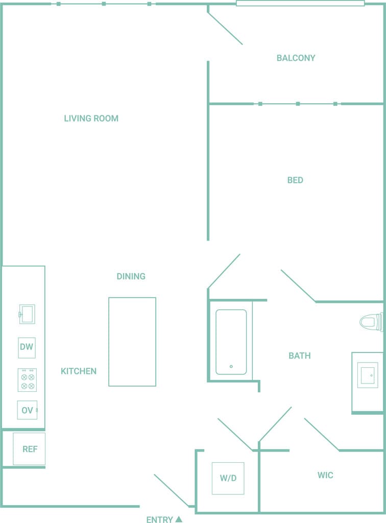 A5 - Floorplan 1 Apartment Unit: 670Apartment Model: A5$3,0881 Bedroom, 1 Bath, 744 sq ftAvailable NowFloorplan A4