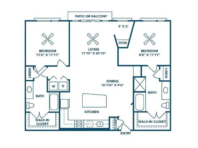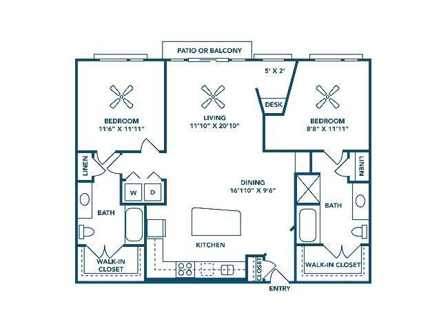 E1B - Floorplan 2 Apartment Unit: 192Apartment Model: E1BFrom $1,182Studio, 1 Bath, 555 sq ftAvailable NowFloorplan E1