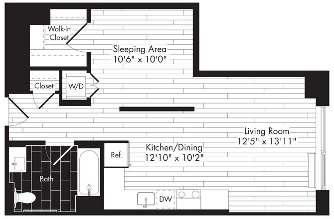Studio, 1 Bath, 610 sq ftAvailable NowModel Gallery