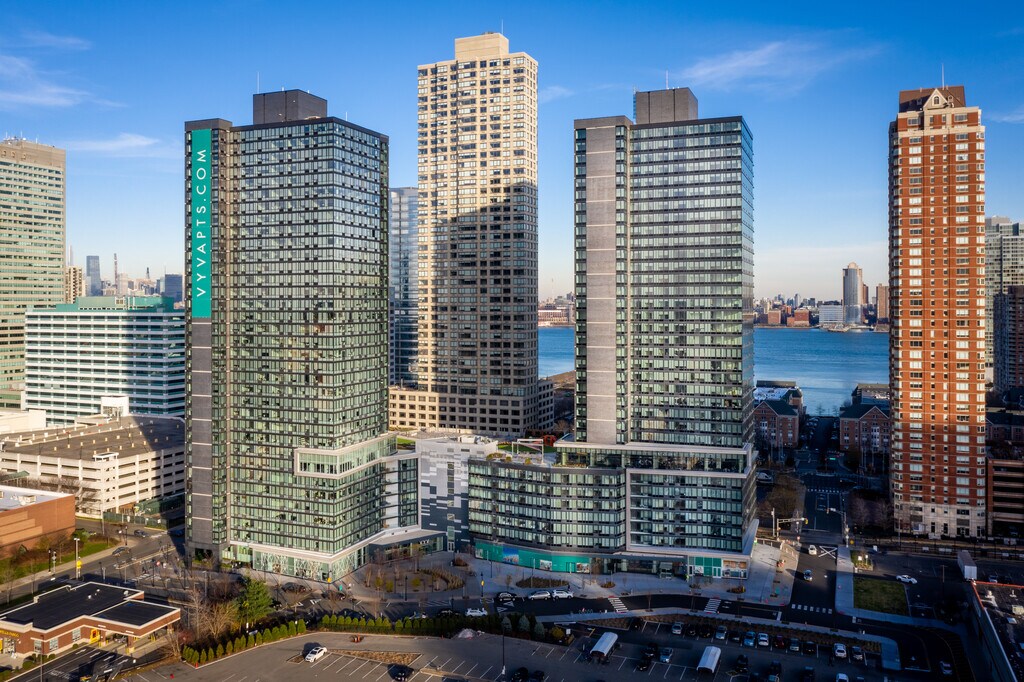 Arrive to the unexpected. It's time to venture beyond the ordinary; to demand more. Stop compromising and start a life without limitations. At VYV, you get more than just a home. Generously sized apartments from studios to two bedrooms, with exquisite modern finishes - quartz, chrome, sustainable wood. Create inspired meals in your chef's kitchen, take in the views through expansive windows, life is good at VYV. Work in Manhattan. Play in Jersey City. Head to Grove Street and Exchange Place, or take the Light Rail right from your doorstep. When you call VYV your home, it's all within reach. Experience life as it should be. All the convenience with 24/7 concierge, on-site garage parking, and bike storage. Mindfulness and relaxation with cozy nooks, outdoor decks, a private fitness studio, and plush lounges. At VYV, it's just the beginning. With stunning views, serene spaces, and luxurious amenities, this is one place you'll happily call home.