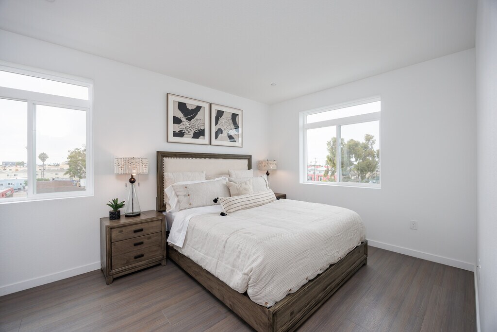 Welcome to your new home in the heart of North Park—San Diego’s most vibrant and walkable neighborhood. This newly constructed building combines contemporary design with high-end finishes and thoughtful amenities, creating a living experience that’s both stylish and convenient. Building Features Enjoy easy access to all floors with two elevators and secure on-site parking. Cyclists will appreciate the dedicated bike storage located on the ground level. Head up to the rooftop to relax in the lounge or barbecue area while taking in panoramic views of downtown and the mountains. The building also includes a recreational space, complete with games and entertainment options for residents to enjoy. In-Unit Features Each apartment offers spacious, open-concept layouts with high ceilings and plenty of natural light. Bedrooms include walk-in closets for ample storage, and every unit features a private balcony—some with oversized outdoor space. Interiors are finished with luxury vinyl plank flooring and tile throughout (no carpet), giving each home a modern, clean aesthetic. The kitchens boast textured taupe cabinetry, quartz countertops, and stainless steel appliances. Additional conveniences include central air conditioning and in-unit washer and dryer. Neighborhood Highlights Located in the lively North Park community, this building is steps from top-rated restaurants, cafes, boutiques, and grocery stores. Enjoy nearby North Park Community Park with its playground, dog park, and open green spaces. Entertainment is always close by with venues like the Observatory North Park offering live music and events. Quick access to major freeways and public transportation makes commuting a breeze. Experience elevated urban living in one of San Diego’s most desirable neighborhoods.