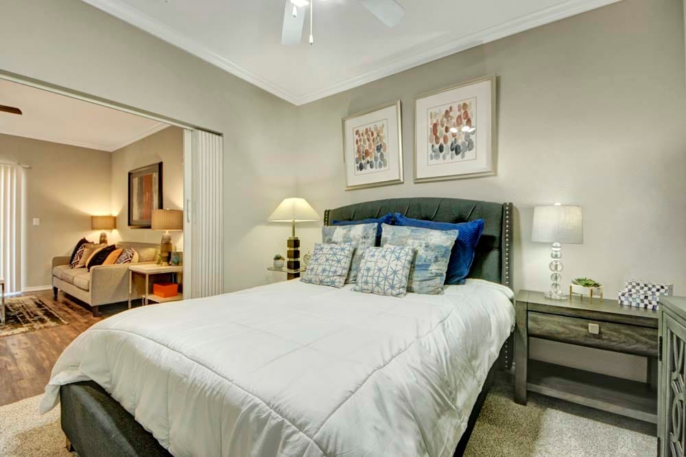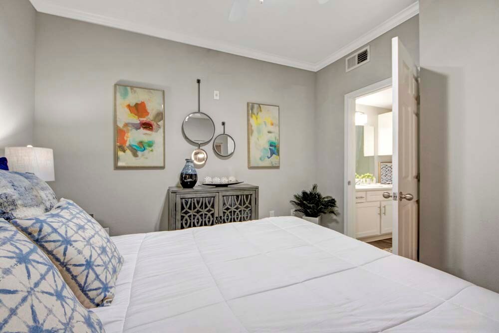 Leave your worries behind when you come home to Vail Quarters. Our pet-friendly apartments and townhomes in North Dallas near Galleria offer a sense of escape from the daily hustle. This feeling of tranquility and relaxation starts when you glimpse the verdant landscaping in our garden-style community and is enhanced by resort-style amenities and a variety of upscale features and floor plans designed to complement your lifestyle. Make your getaway to Vail Quarters.