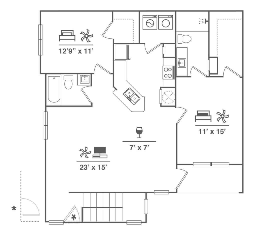 2 Beds, 2 Baths, 1436 sq ftAvailable NowLargest 2 BedroomThis is the largest 2 Bedroom at this PropertyModel Gallery