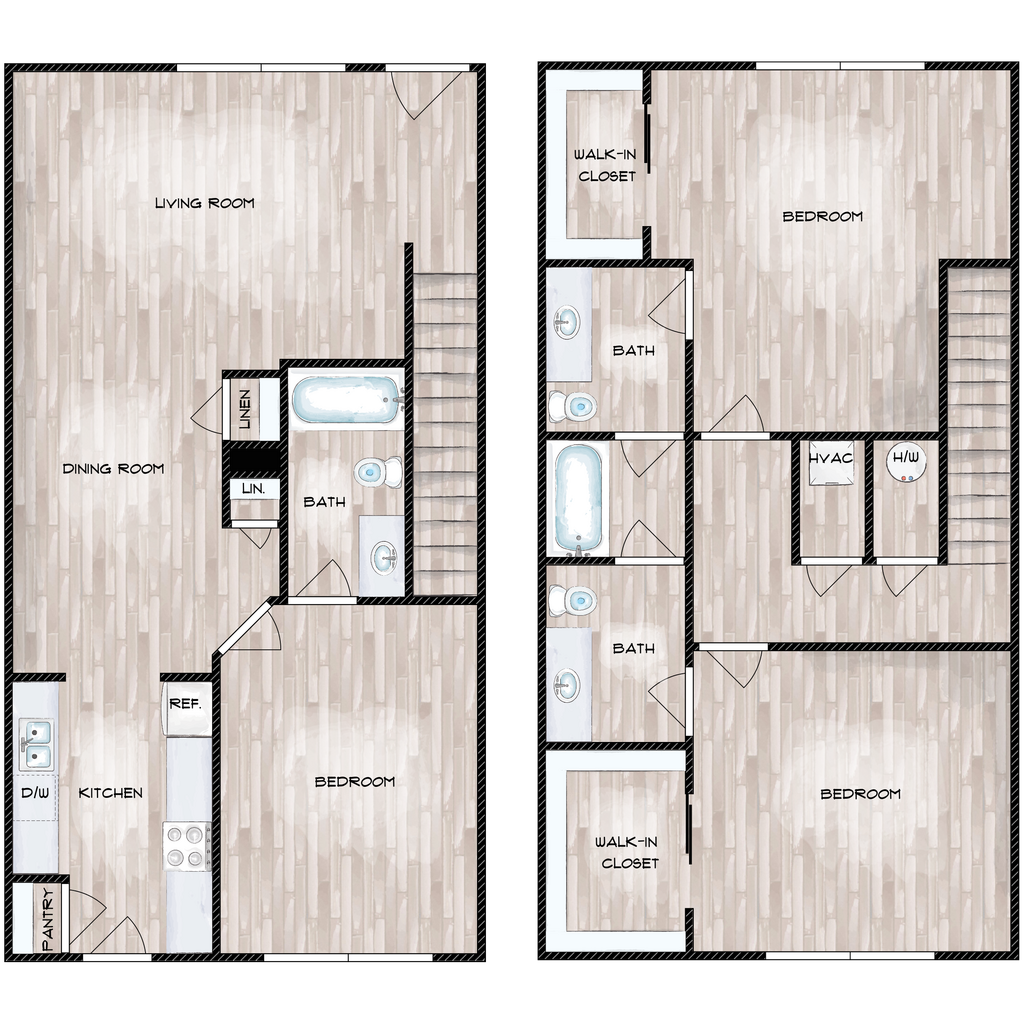 Apartment Model: 3x2 TownhomeFrom $1,3493 Bedroom, 2 Bath, 1200 sq ftAvailable November 30, 2025![]()