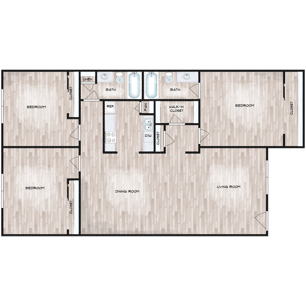 Apartment Model: 3x2From $1,3493 Bedroom, 2 Bath, 1200 sq ftAvailable Now![]()