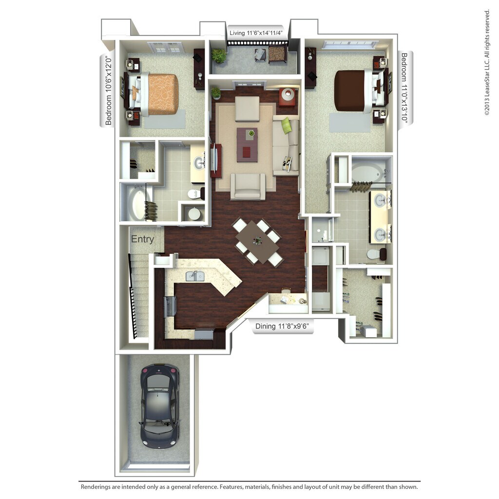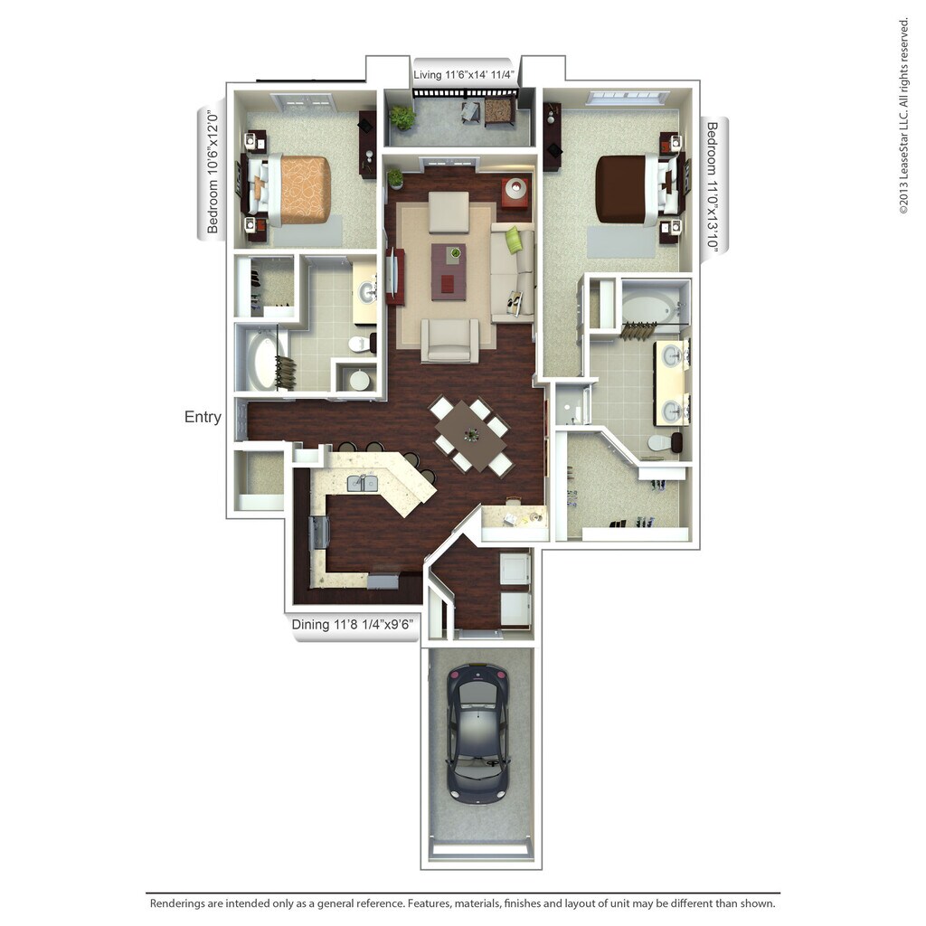 2 Beds, 2 Baths, 1208 sq ftModel Gallery