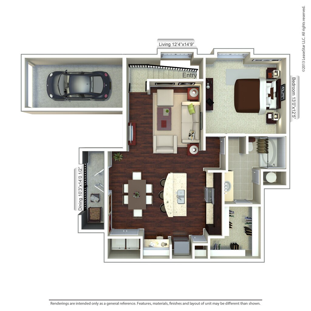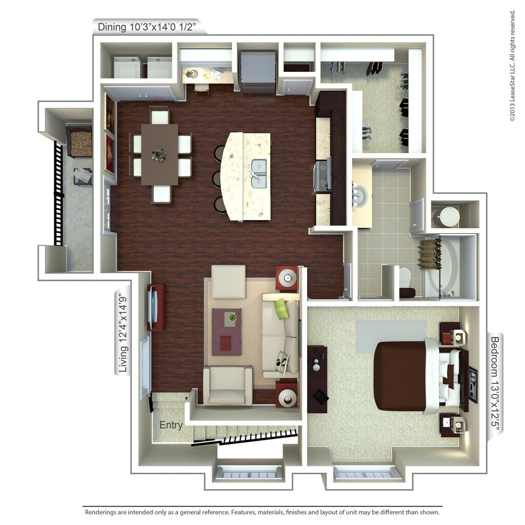 1 Bed, 1 Bath, 754 sq ftModel Gallery