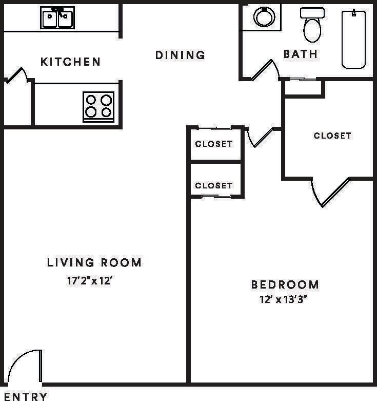 1 Bedroom 1 Bath - Floorplan 1 2 Bedrooms