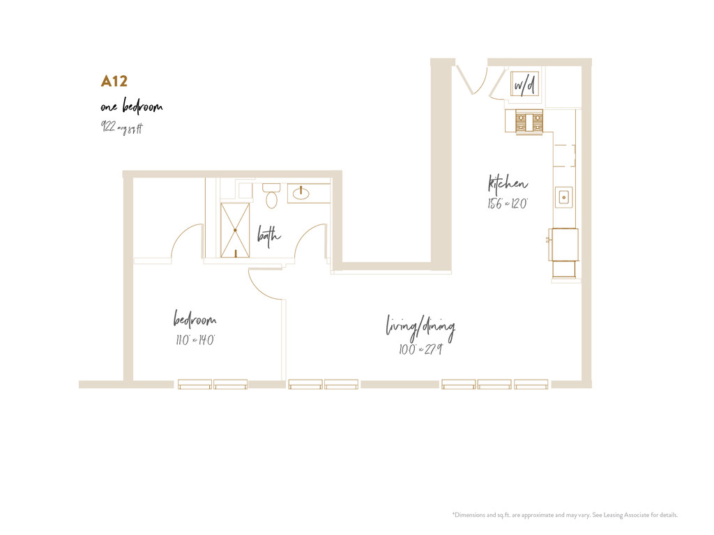 Apartment Unit: 508Apartment Model: A4$3,4031 Bedroom, 1 Bath, 799 sq ftAvailable NowFloorplan A12