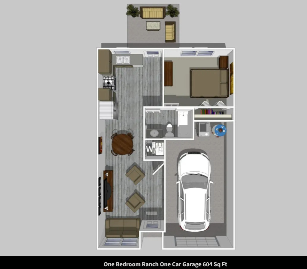 Price Availability Date Unit Sq Ft $1,150 Call for Availability Ranch with One Car Attached Garage 604 sq ft Model Amenities and Features