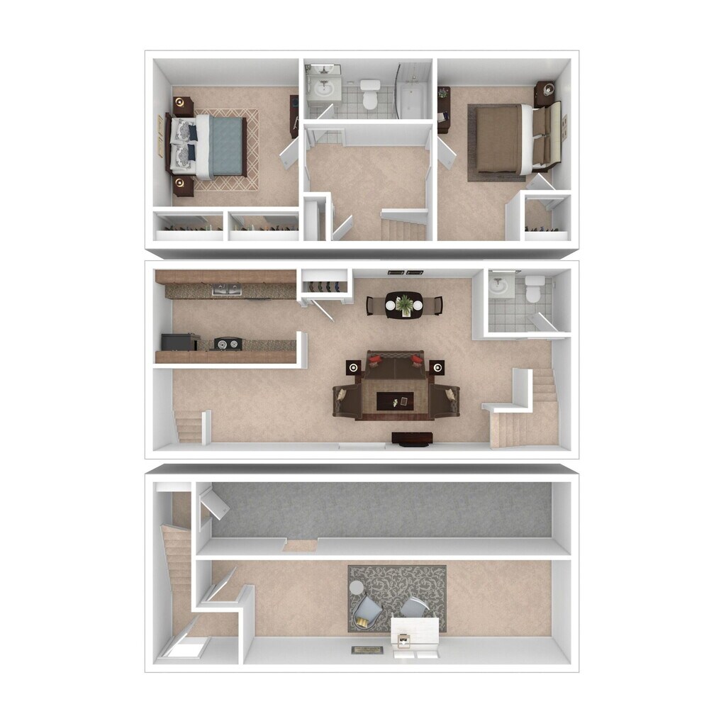 Call us today for rates on the 2 Bedroom to 2 options at Valley Brook Townhomes