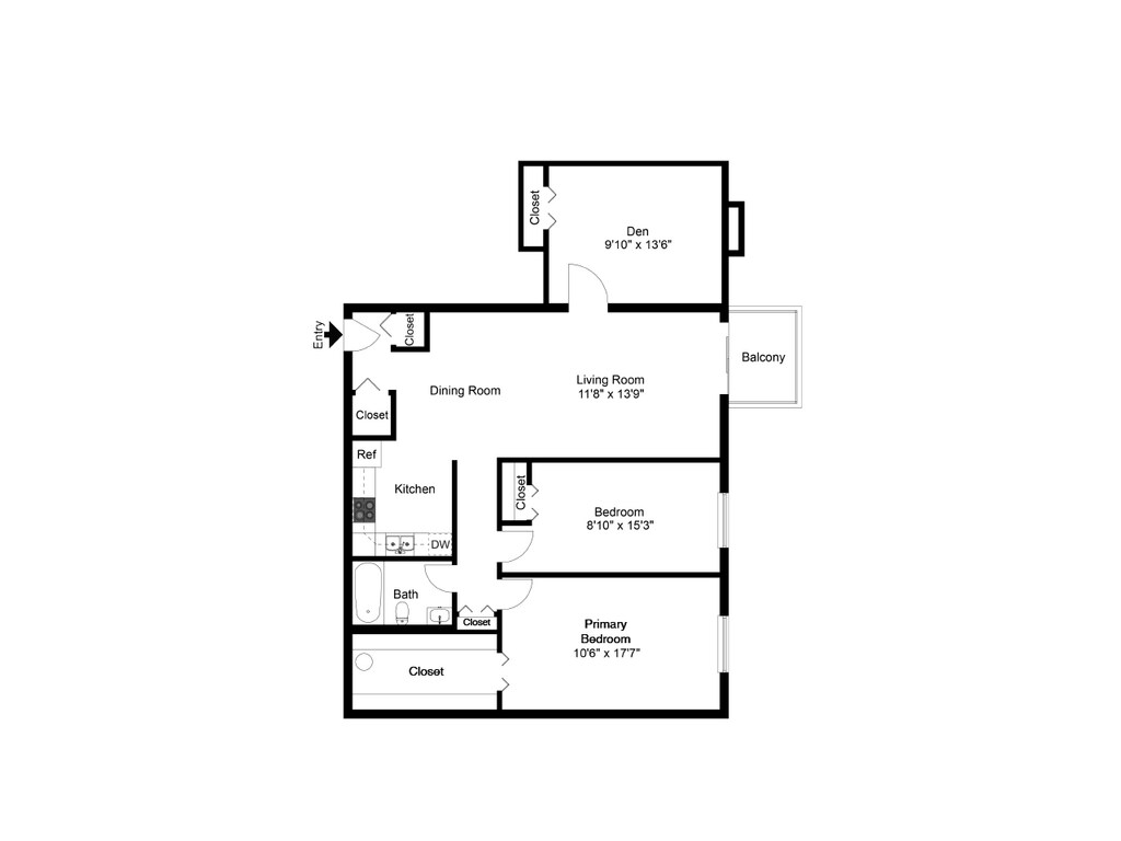 One Bedroom Den - Floorplan 2 Apartment Unit: A-A407Apartment Model: One Bedroom Den$1,7971 Bedroom, 1 Bath, 825 sq ftAvailable January 10, 20262 Bedrooms