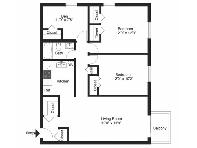 Apartment Model: Two Bedroom Den Medium$2,0472 Bedroom, 1 Bath, 1000 sq ftAvailable December 6, 2025![]()
