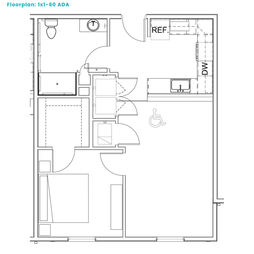 One Bedroom 1x1-60 ADA - Floorplan 1 1 BRx 1 BA