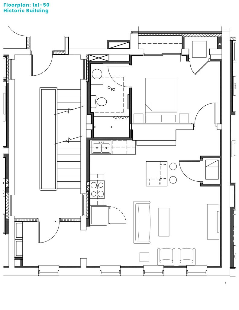 One Bedroom 1x1-50 - Floorplan 4 One Bedroom 1x1-60
