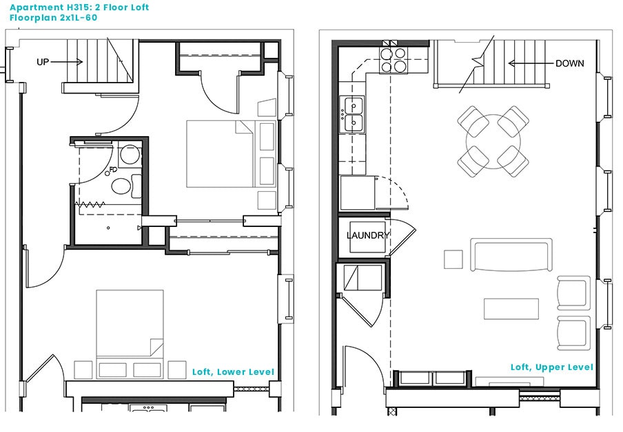 Loft, Two Bedroom 2x1L-60 - Floorplan 3 Two Bedroom 2x1-40