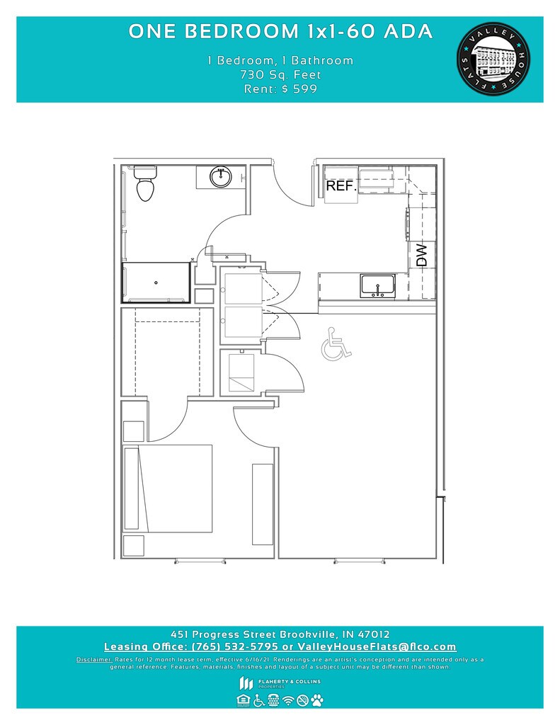 Apartment Model: One Bedroom 1x1-60 ADA1 Bedroom, 1 Bath, 730 sq ftUnavailable![]()