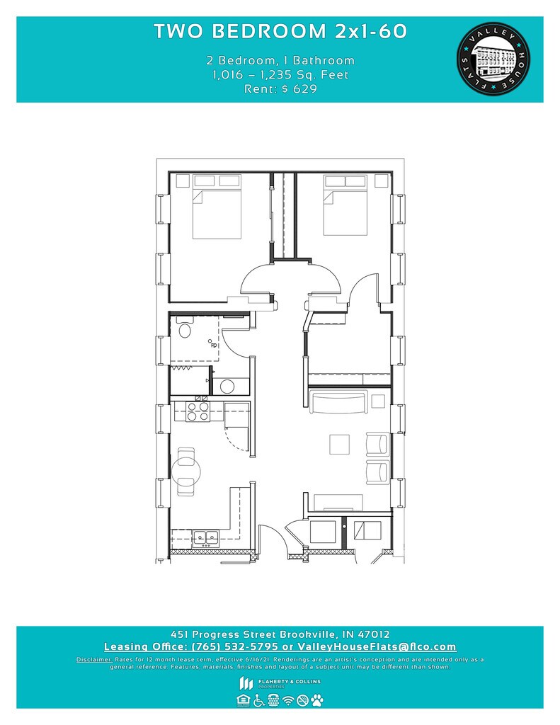 2 Beds, 1 Bath, 1029-1235 sq ftModel Gallery
