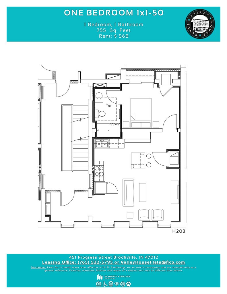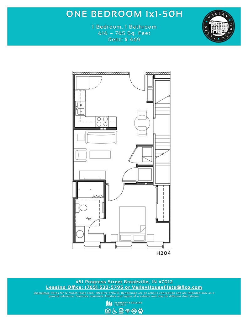 Apartment Model: One Bedroom 1x1-50H1 Bedroom, 1 Bath, 616-765 sq ftUnavailable![]()