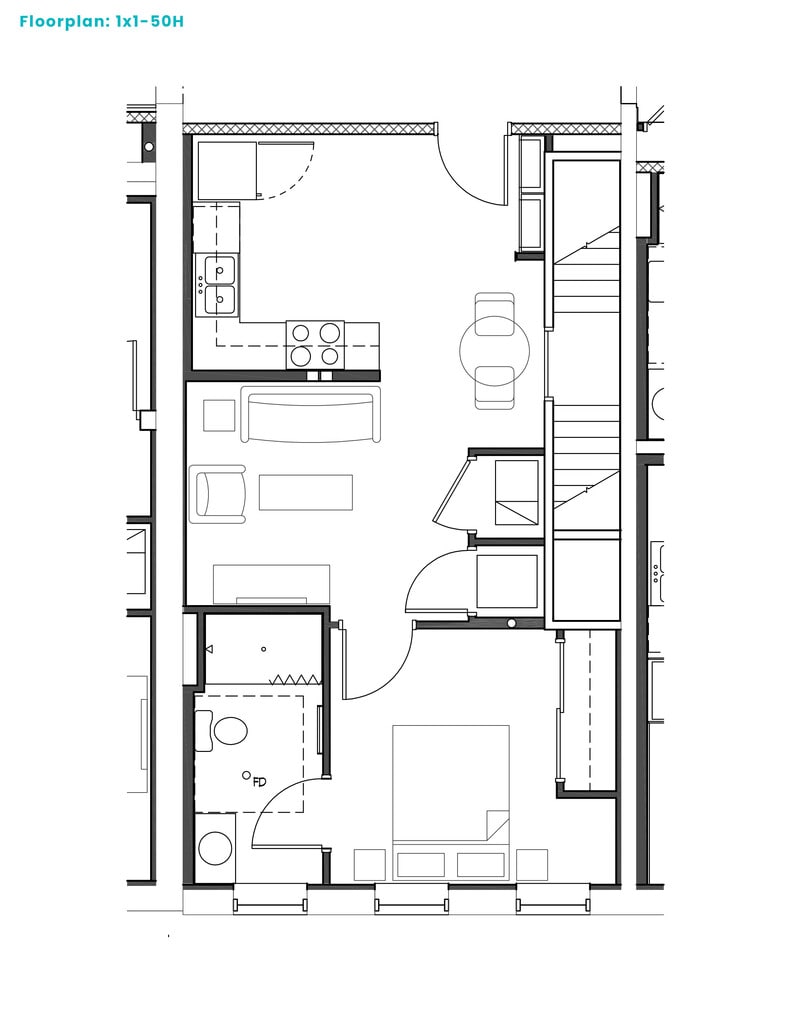 One Bedroom 1x1-50H - Floorplan 1 ![]()