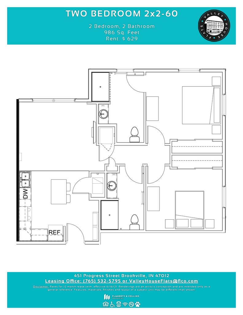 Apartment Model: Two Bedroom 2x2-602 Bedroom, 2 Bath, 986 sq ftUnavailable![]()