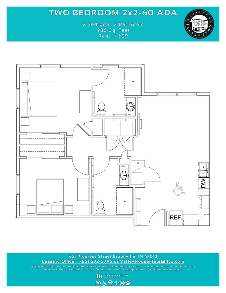 Two Bedroom 2x2-60 ADA - Floorplan 1 ![]()