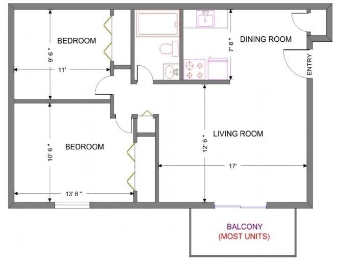 1 Bed 1Bath - Floorplan 1 Apartment Unit: 108AApartment Model: 1 Bed 1Bath$8501 Bedroom, 1 Bath, 501 sq ftAvailable December 12, 20252 Bedrooms