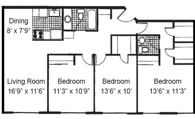 Apartment Model: 3 Bedroom$1,3613 Bedroom, 1.5 Bath, 1190 sq ftUnavailable![]()