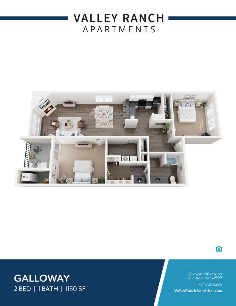 Apartment Model: GallowayFrom $1,5502 Bedroom, 1 Bath, 1150 sq ftAvailable Now![]()