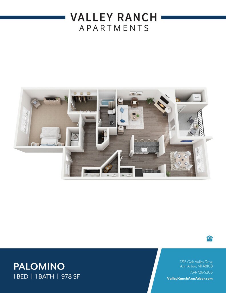 Appaloosa - Floorplan 2 Apartment Unit: 20102Apartment Model: Appaloosa$1,5951 Bedroom, 1 Bath, 870 sq ftAvailable NowPalomino