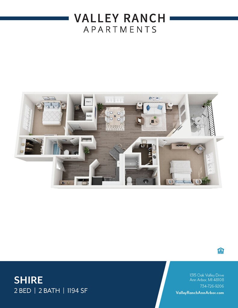 One of Ann Arbor’s most luxurious apartment communities, Valley Ranch, offers apartment homes that have been designed with you in mind! Valley Ranch is the preferred choice for our residents because of the great layouts of each one and two-bedroom apartment home, the gas fireplace in each home, dramatic cathedral ceilings in our second-floor apartment homes, generous closet space, intrusion alarms, built-in microwaves, large kitchen pantries, and a washer and dryer in each home. Our residents are able to maintain their active lifestyle with an energizing amenity package that includes a newly expanded state-of-the-art cardio and strength training center, outdoor pool with a spacious sundeck, and so much more! Experience the lifestyle that you deserve at Valley Ranch!