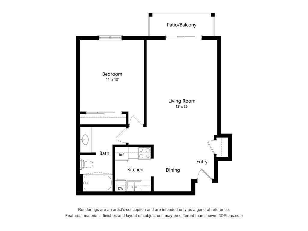 Hickory - Floorplan 2 1 Bedroom