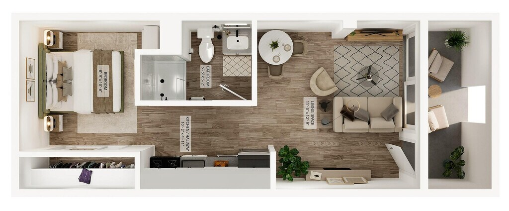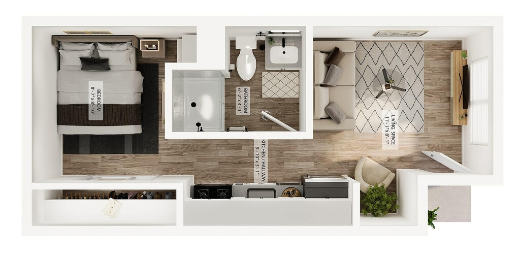 Studio, 1 Bath, 317-402 sq ftModel Gallery