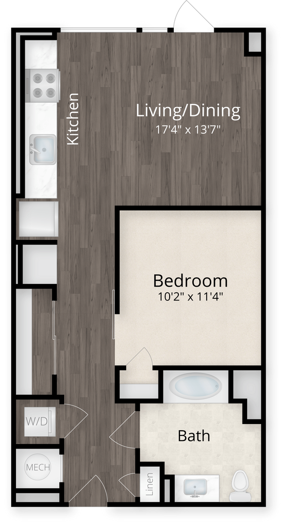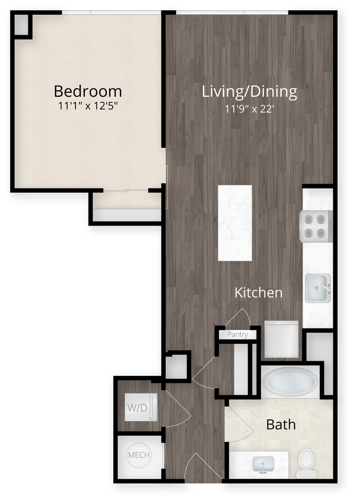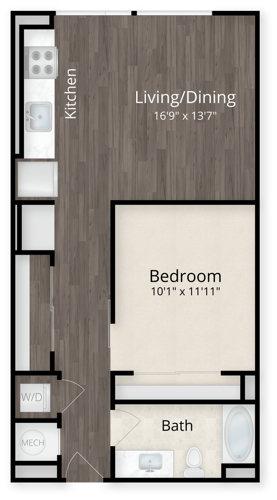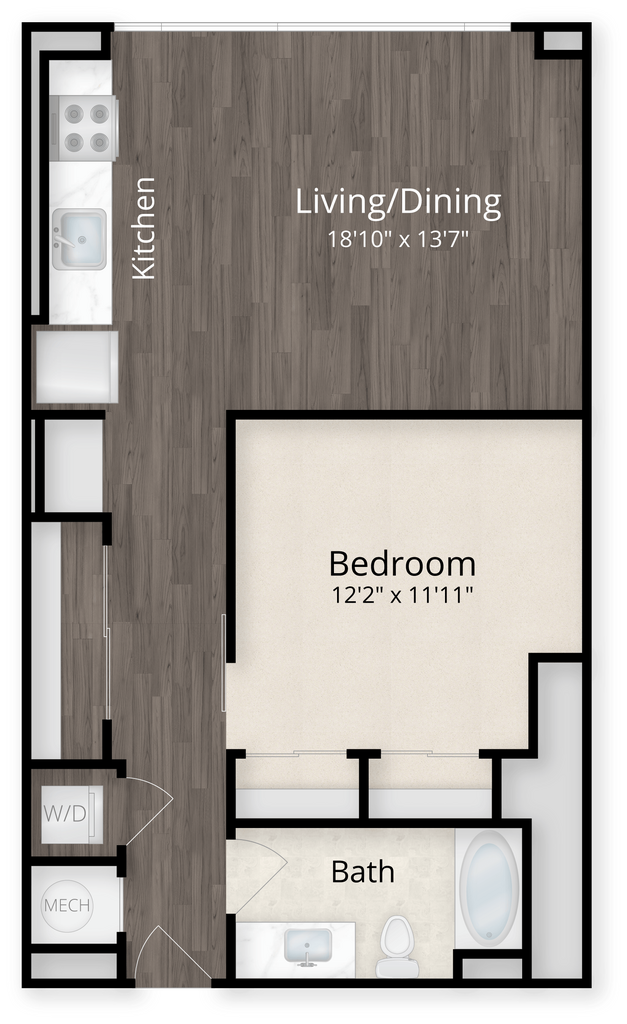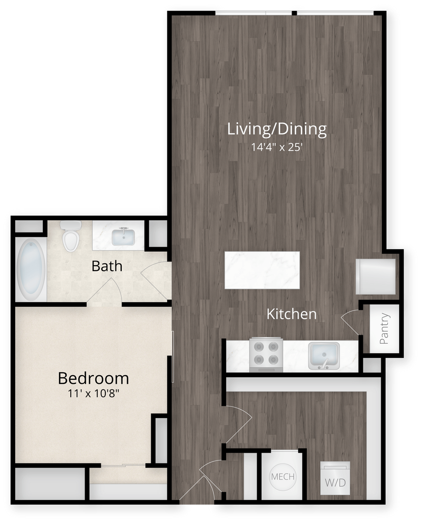 Studio, 1 Bath, 444-504 sq ftAvailable January 3, 2026Model Gallery