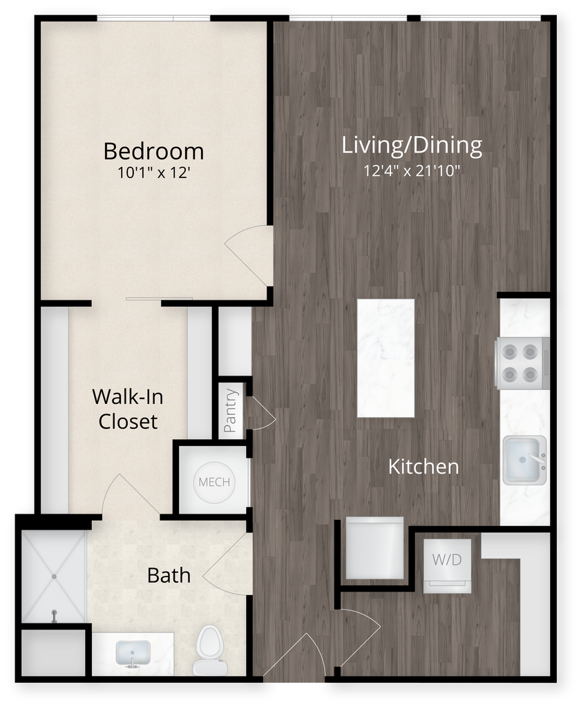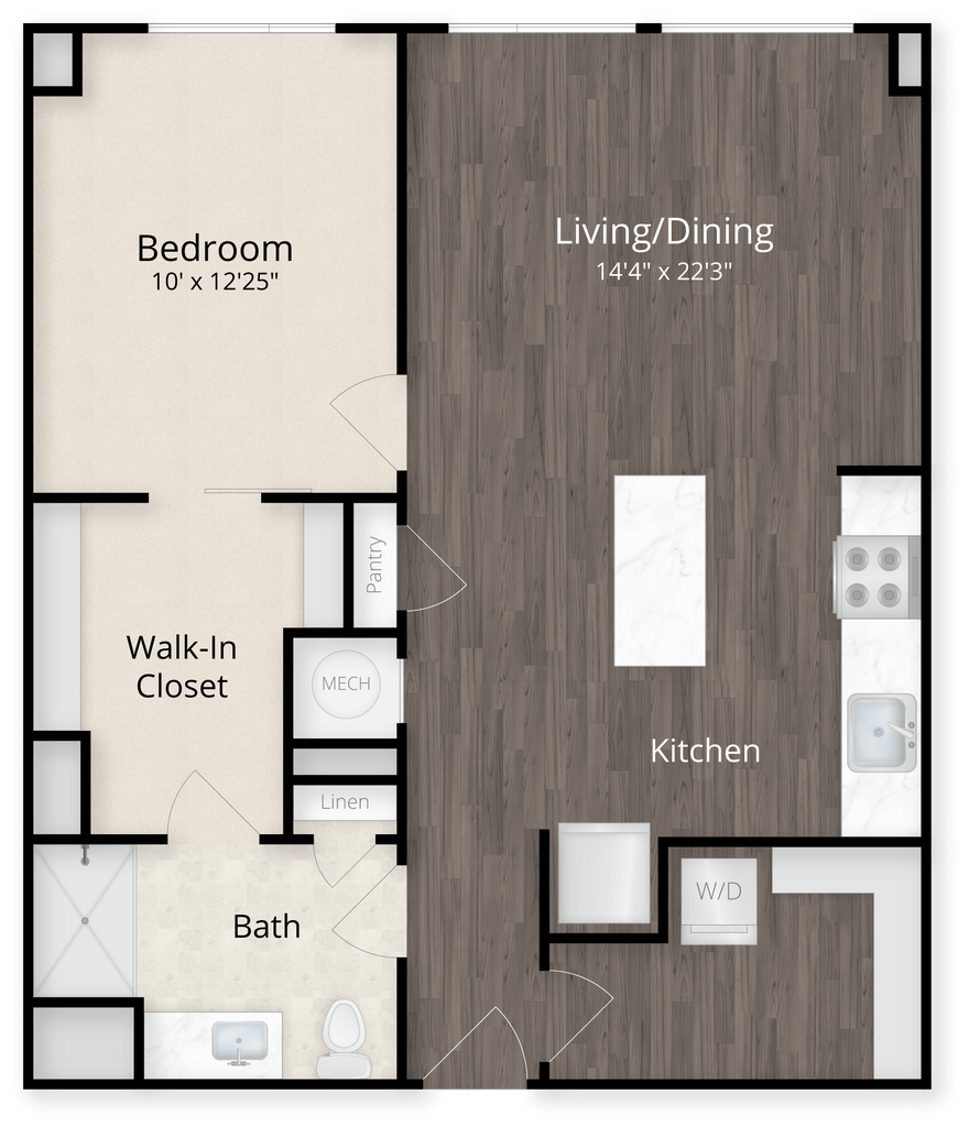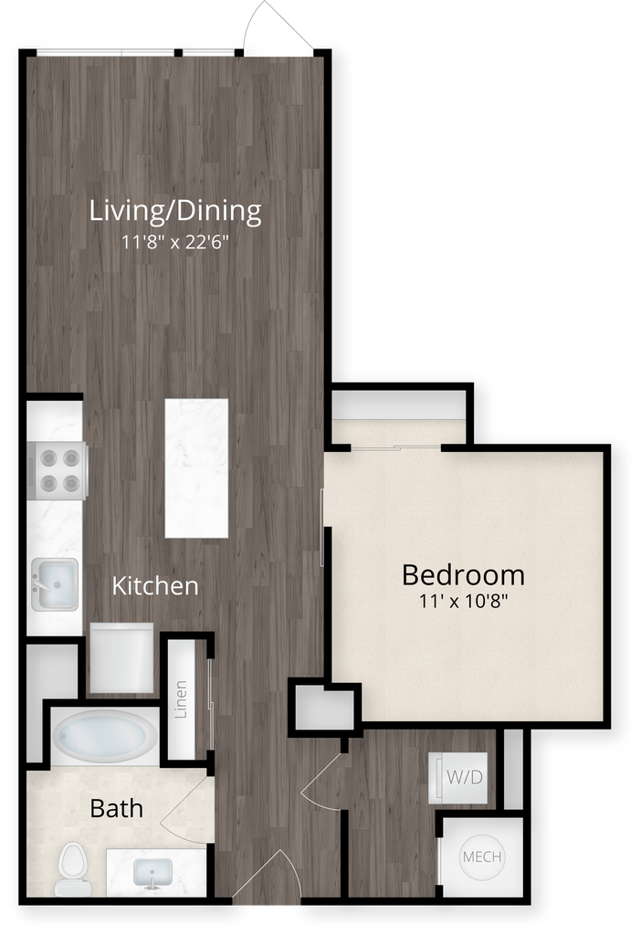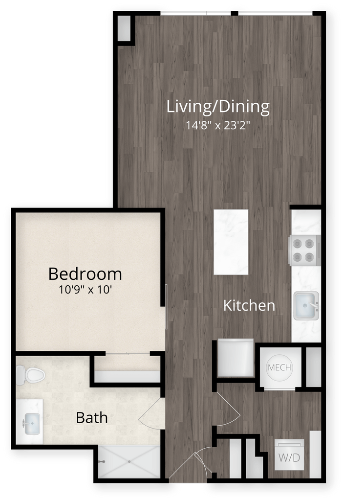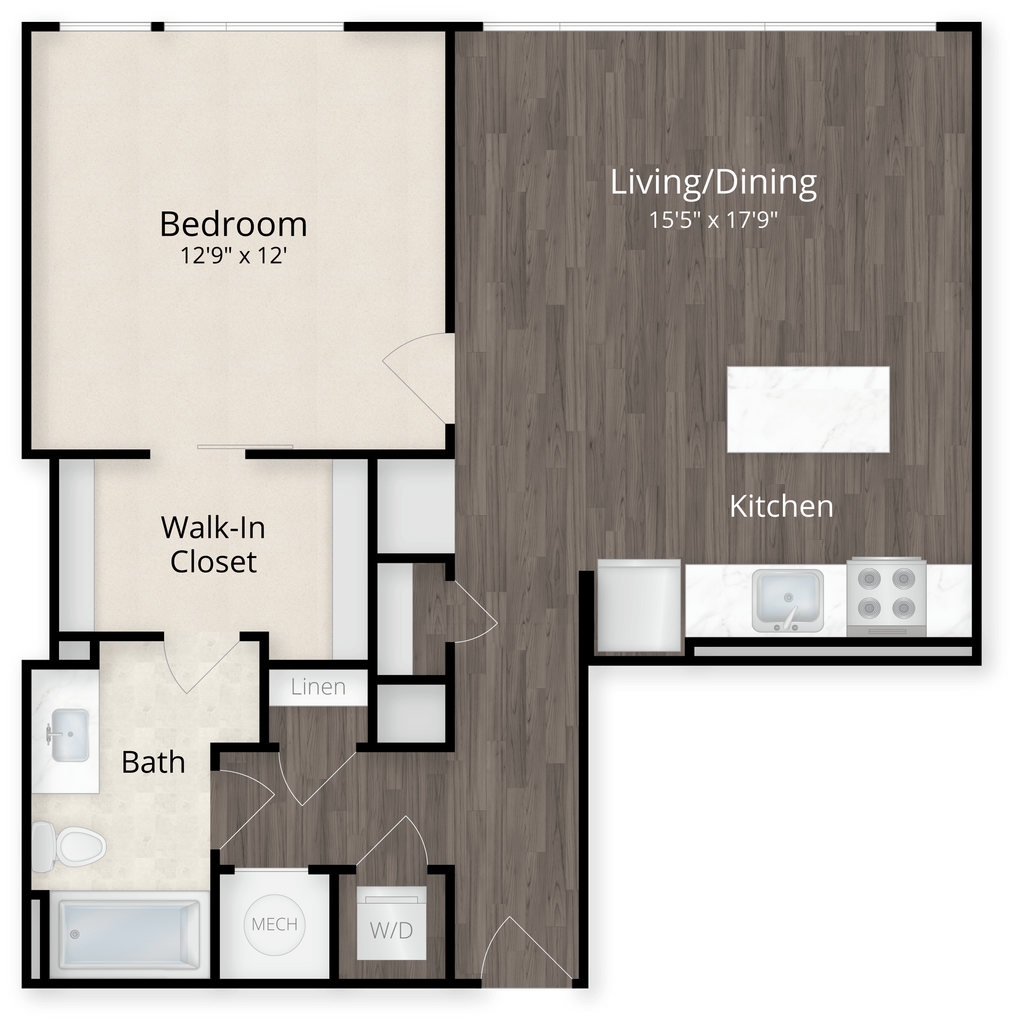 Studio, 1 Bath, 444-504 sq ftAvailable January 3, 2026Model Gallery
