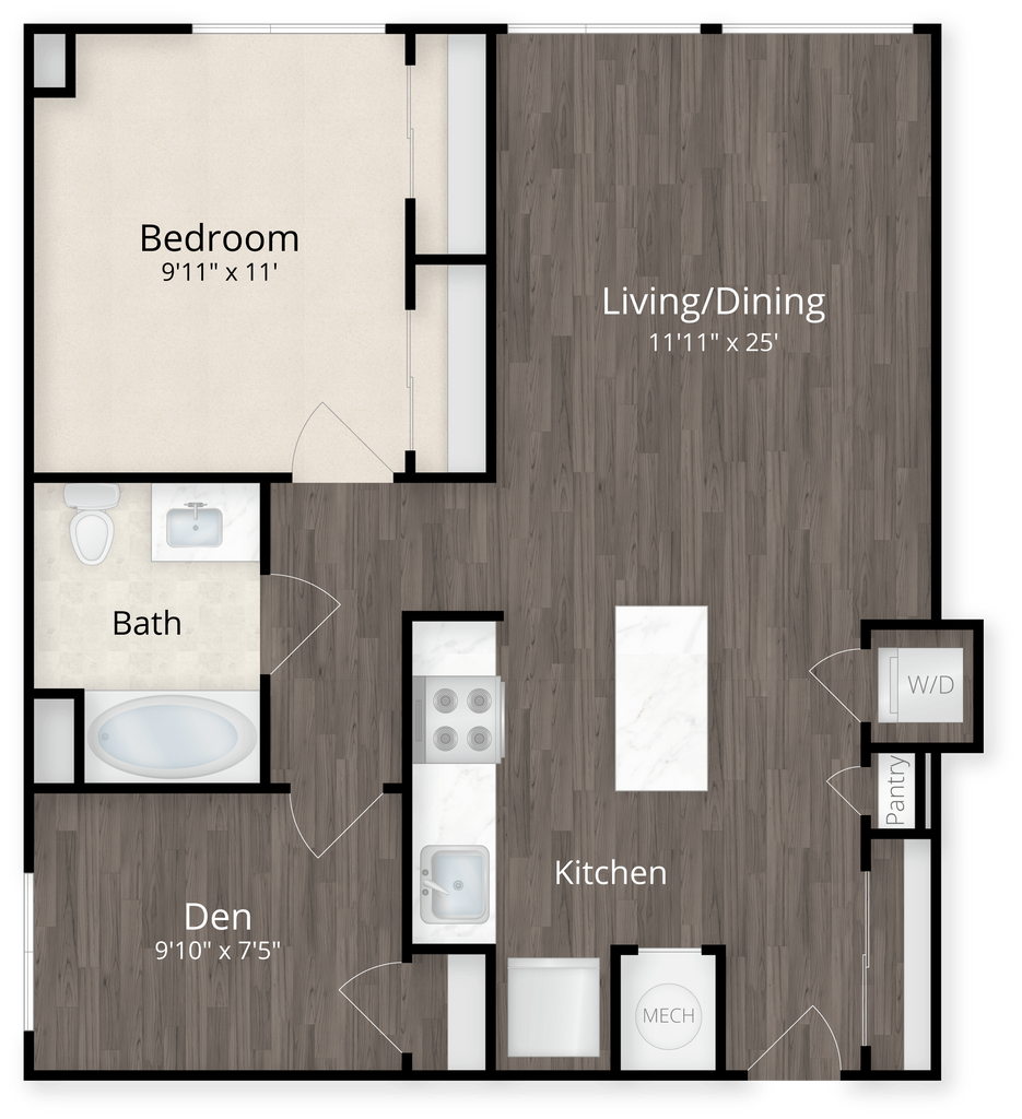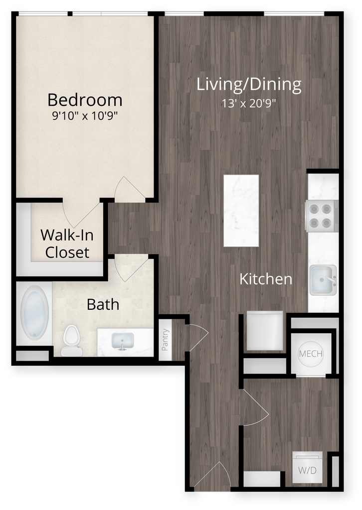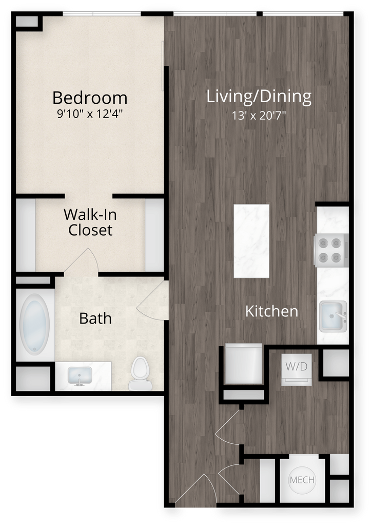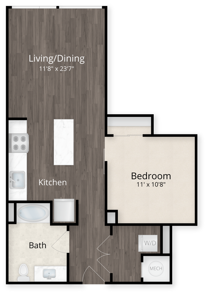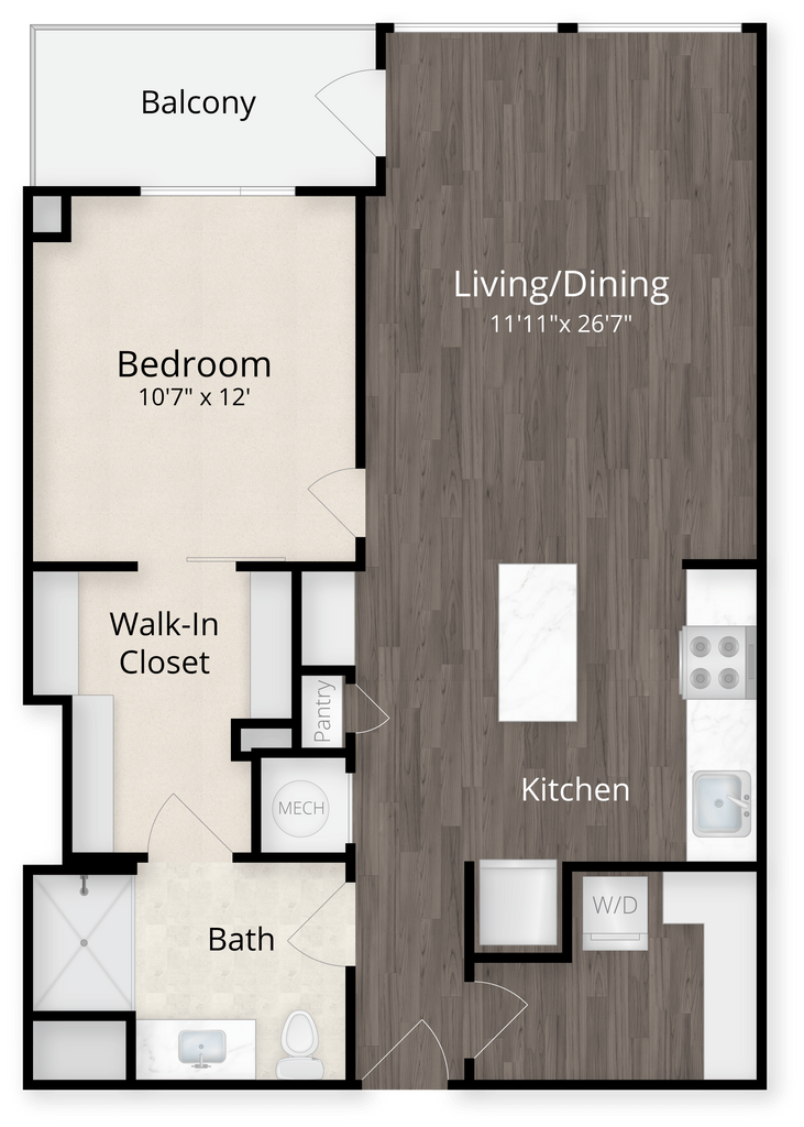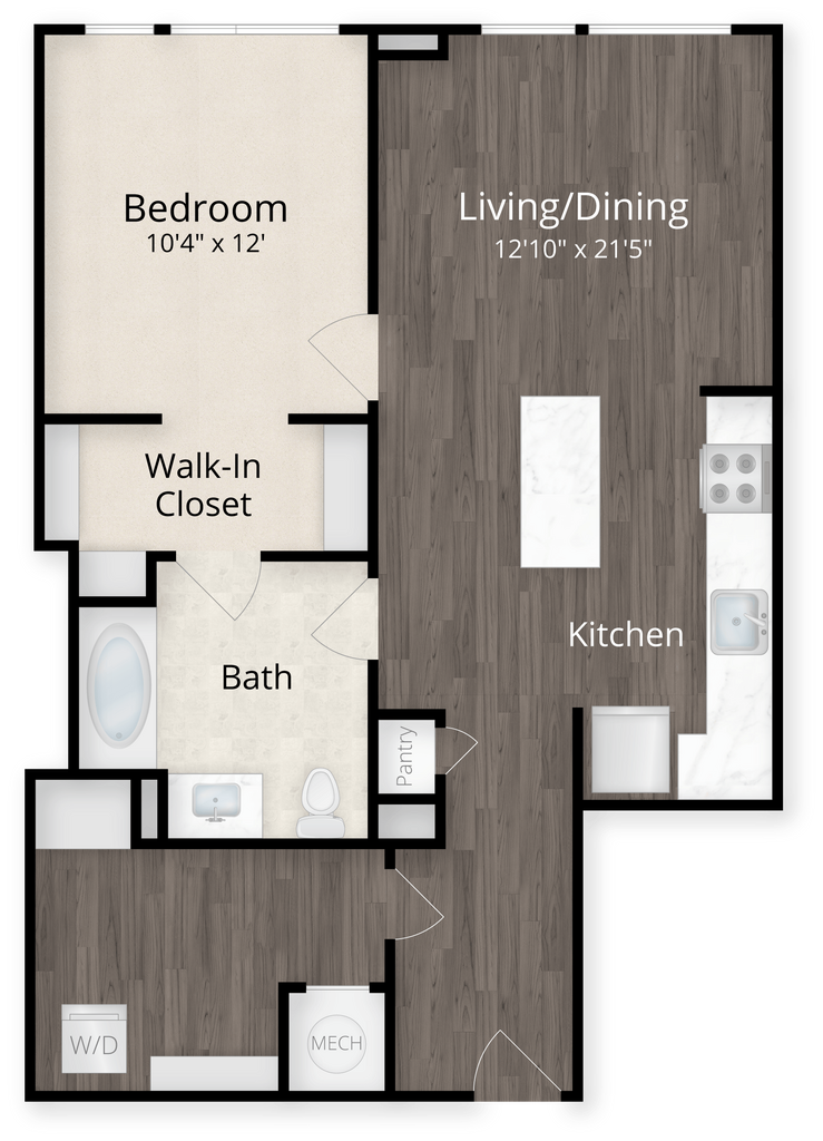 1 Bed, 1 Bath, 626-664 sq ftAvailable NowCheapest 1 BedroomThis is the cheapest 1 Bedroom at this PropertyModel Gallery