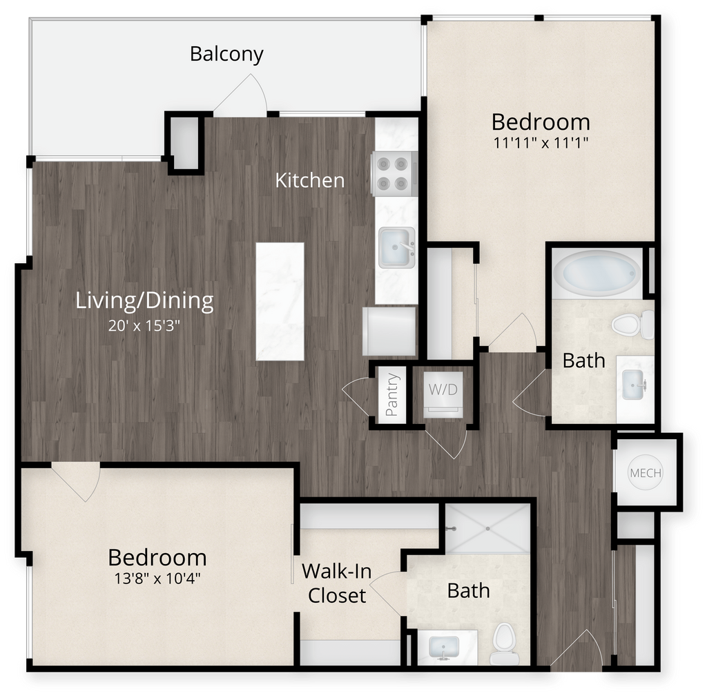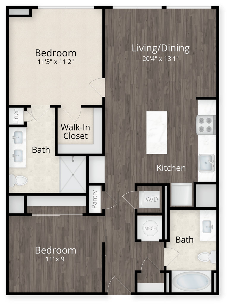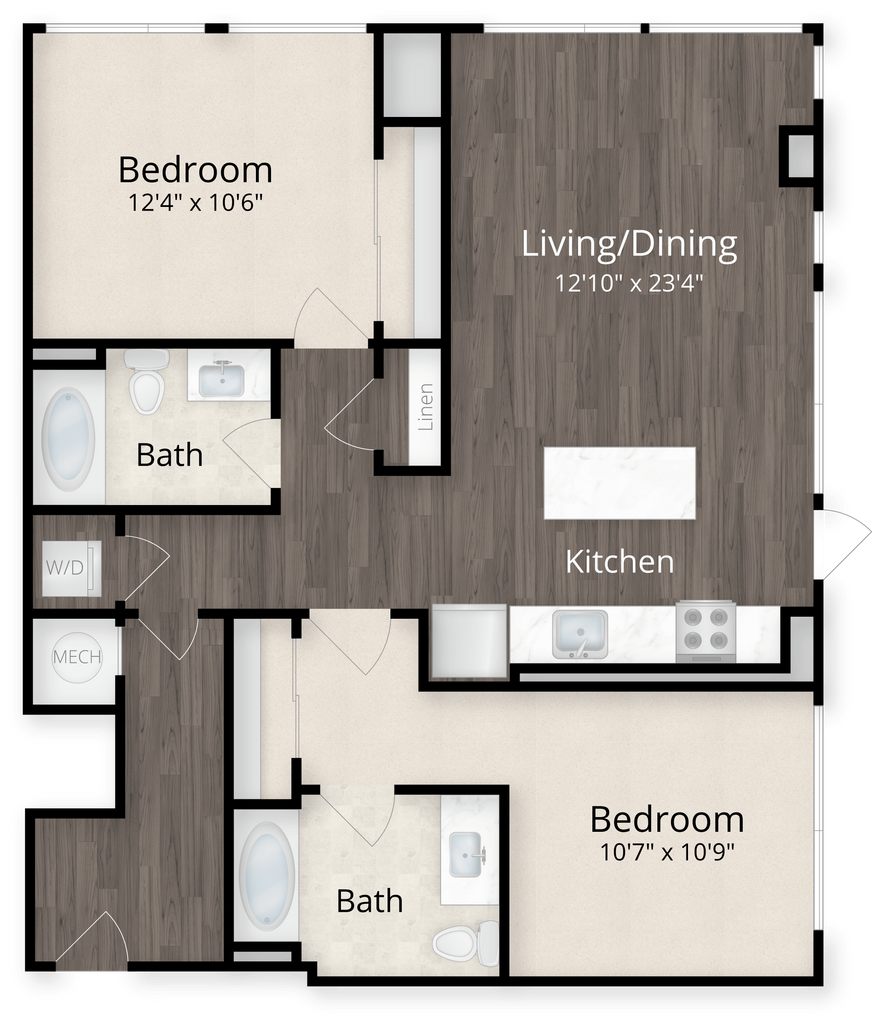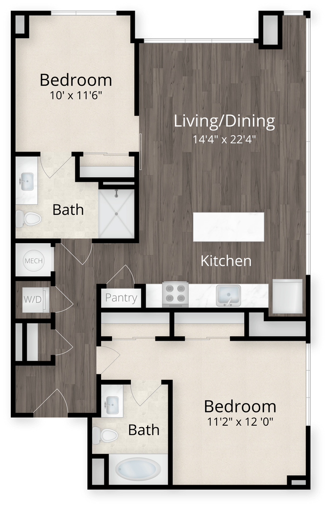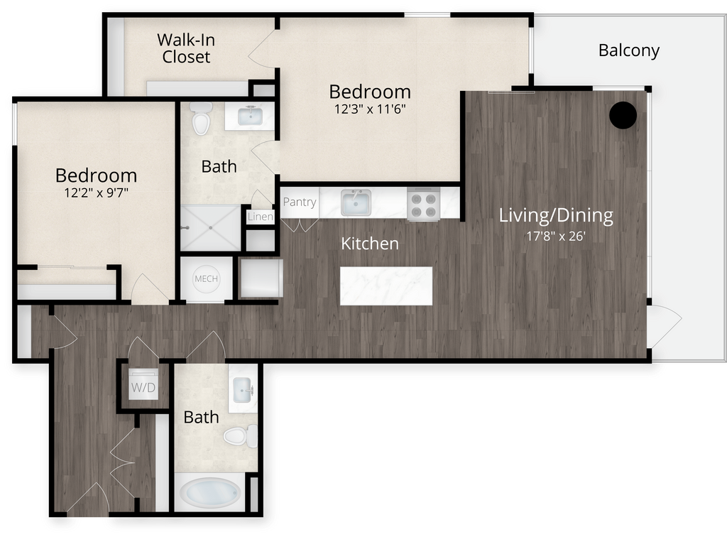 1 Bed, 1 Bath, 626-664 sq ftAvailable NowCheapest 1 BedroomThis is the cheapest 1 Bedroom at this PropertyModel Gallery