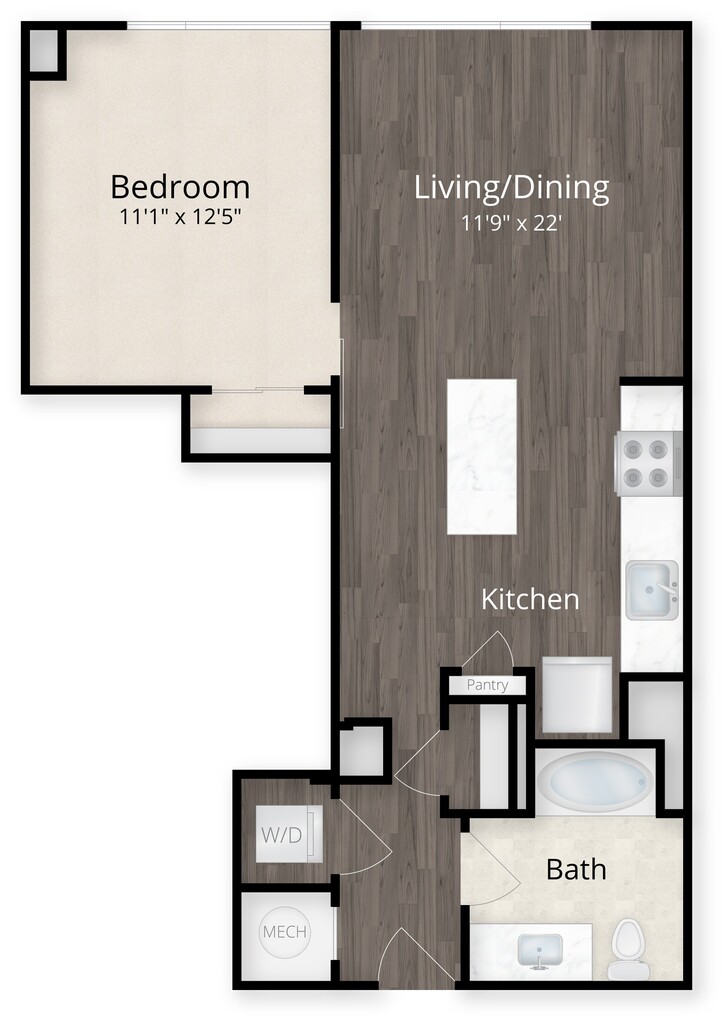 Studio, 1 Bath, 444 sq ftAvailable January 3, 2026Model Gallery