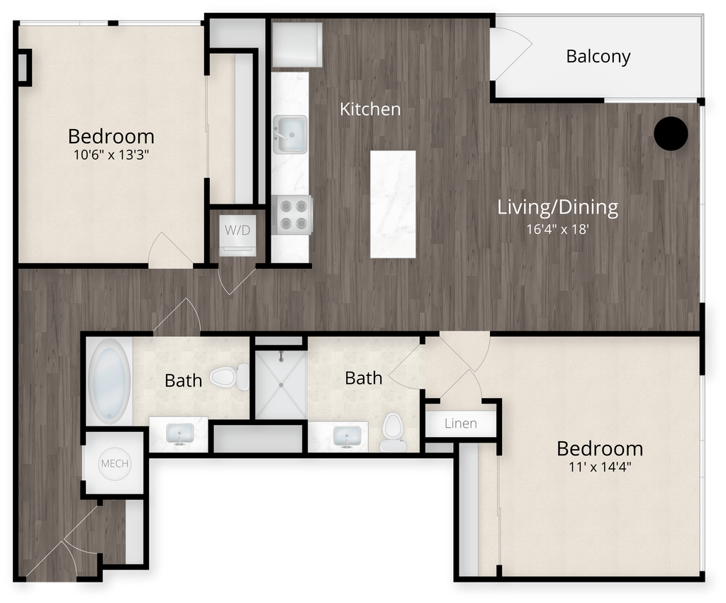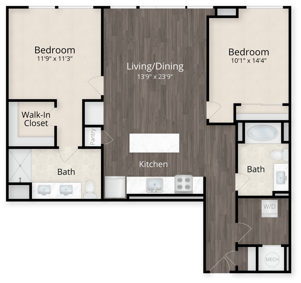 Apartment Model: Jr. One BedroomFrom $2,0801 Bedroom, 1 Bath, 626-664 sq ftAvailable Now![]()