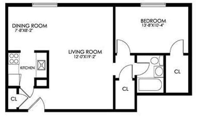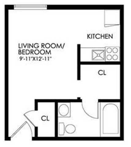Apartment Model: Efficiencies$755Studio, 1 Bath, 323 sq ftUnavailableEfficiencies - Floorplan 1 1 Bedroom