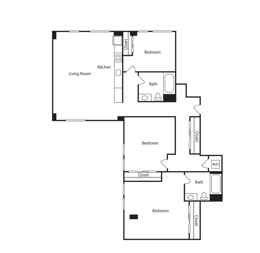 Apartment Model: A3From $3,1951 Bedroom, 1 Bath, 627 sq ftAvailable Now![]()