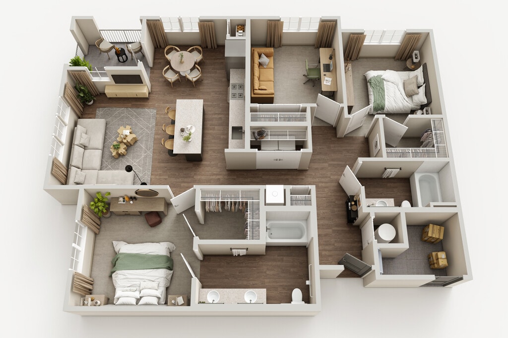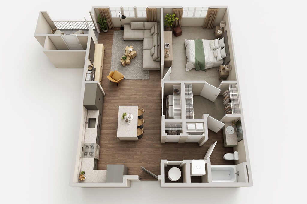 1 Bed, 1 bath - Floorplan 2 2 Bedrooms