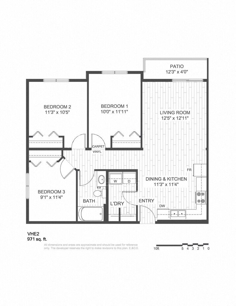 Apartment Model: 3 Bedroom 1 Bathroom3 Bedroom, 1 Bath, 971 sq ftUnavailable![]()