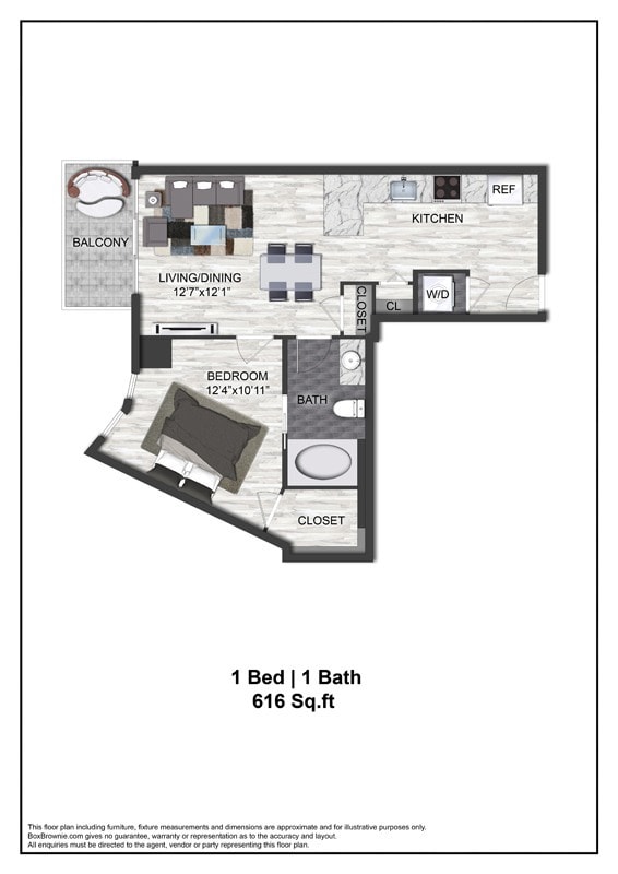 Apartment Model: A1From $2,0641 Bedroom, 1 Bath, 616 sq ftAvailable NowFloor plans are artist's rendering. All dimensions are approximate. Actual product and specifications may vary in dimension or detail. Not all features are available in every rental home. Prices and availability are subject to change. Base rent is based on monthly frequency. Additional fees may apply, such as but not limited to package delivery, trash, water, amenities, etc. Deposits vary. Please see a representative for details.