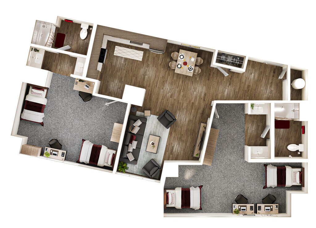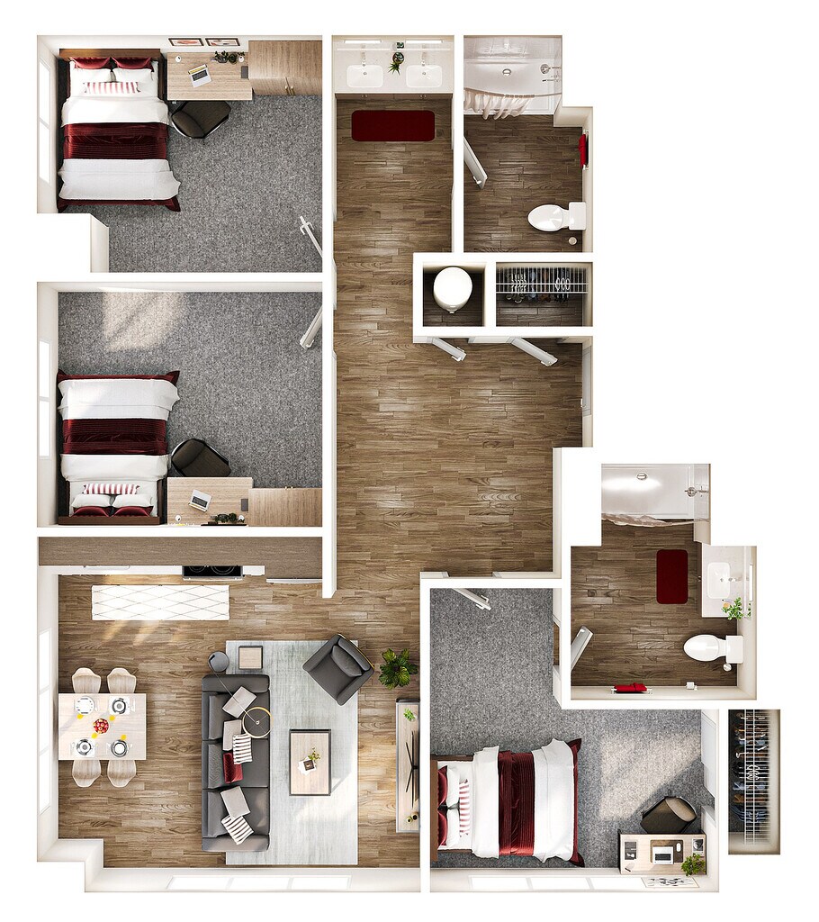 Apartment Model: 4BR/2BA$1,2994 Bedroom, 2 Bath, 1196 sq ftAvailable Now![]()