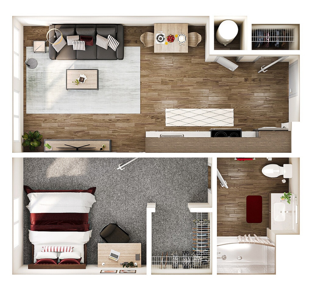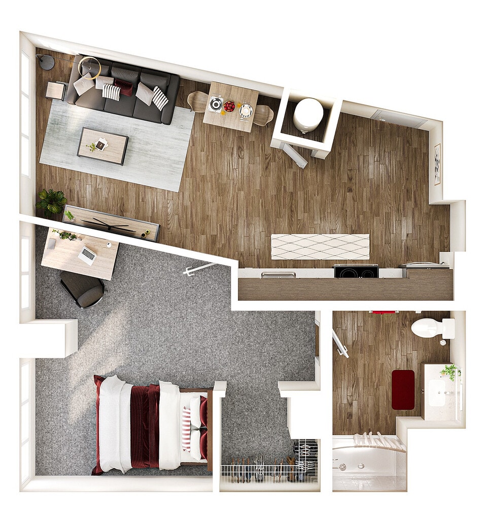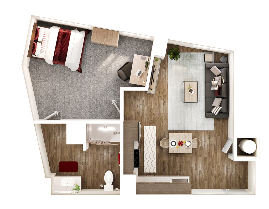 1 Bed, 1 Bath, 545 sq ftAvailable NowModel Gallery