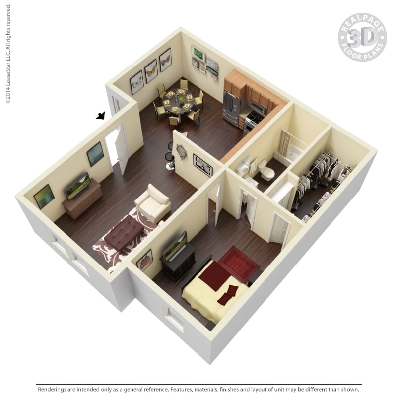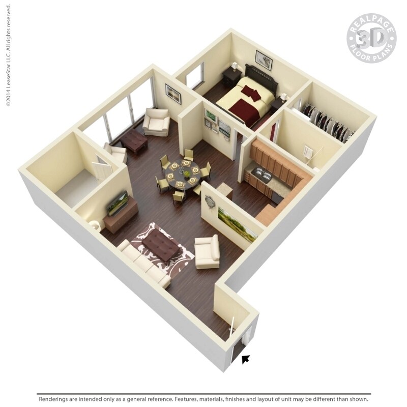 1 Bed, 1 Bath, 606 sq ftAvailable NowModel Gallery