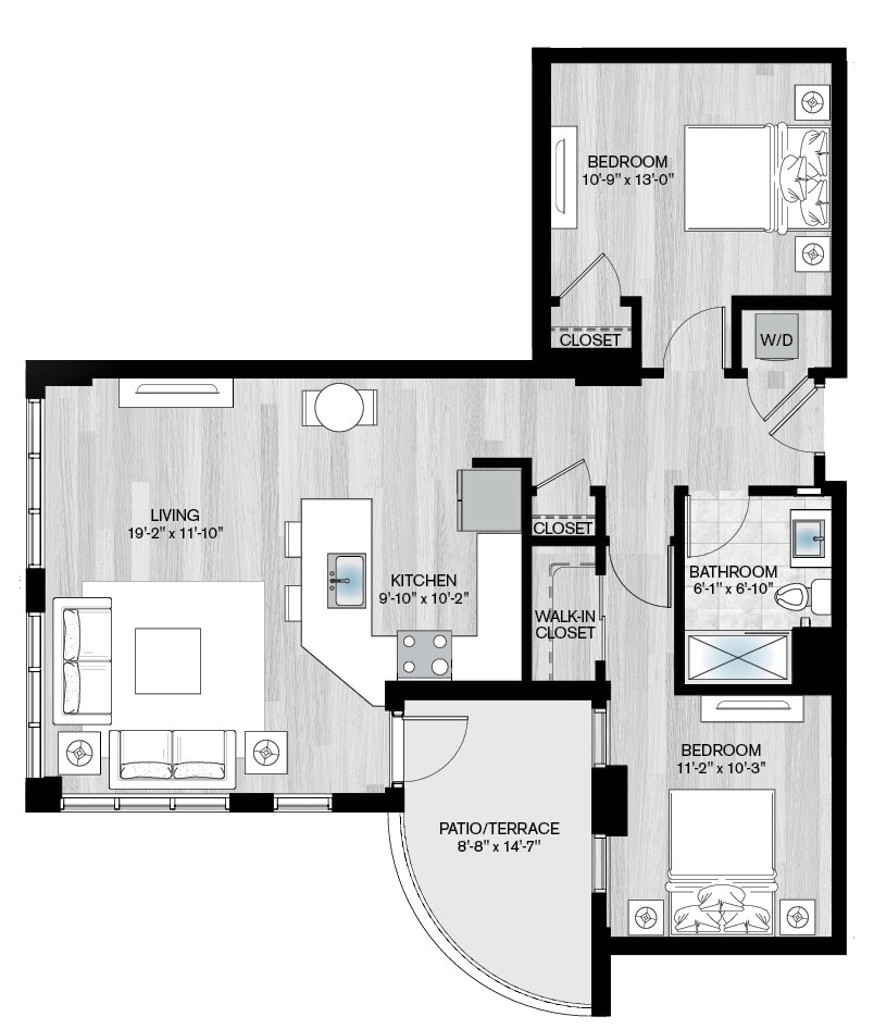 2 Beds, 1 Bath, 895 sq ftAvailable NowModel Gallery