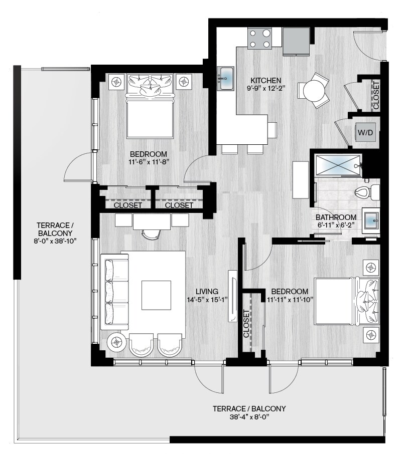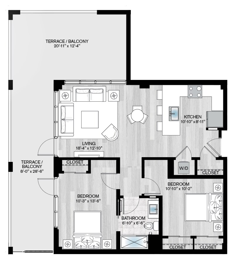 Apartment Model: Riviera | 2 Bed | 1 Bath | SignatureFrom $2,6752 Bedroom, 1 Bath, 841 sq ftAvailable Now![]()